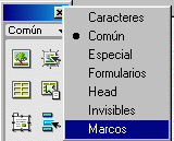 Aparecerá el panel objetos. Pinchamos en la flechita y elegimos Marcos