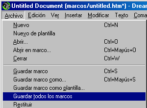 está rodeando al marco superior. De nuevo observamos el nombre de Dreamweaver: