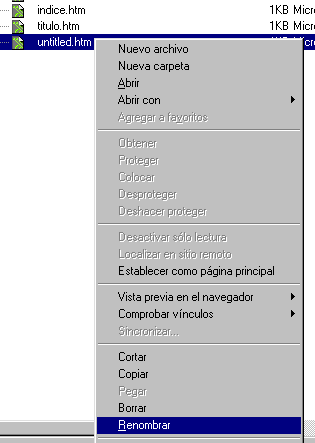 Podemos cambiar el nombre a este último marco y le llamamos principal.htm desde este mismo lugar. Botón derecho: Renombrar