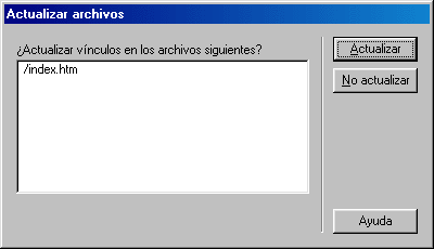 Al haberle cambiado el nombre, aparecerá la siguiente ventana de actualización de los vínculos: