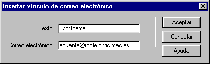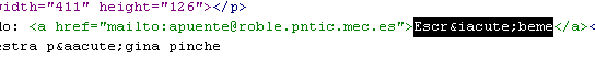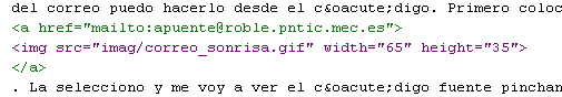 Pues bien, puedo colocar las etiquetas de enlace de correo anteriores: <a href="mailto:apuente@roble.pntic.mec.es"> delante y </a> detrás:
