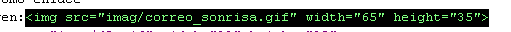 Que me está diciendo que la imagen (img) se encuentra (src source en inglés) en la carpeta imag y se llama correo_sonrisa. Después viene su medida en píxeles en anchura y altura.