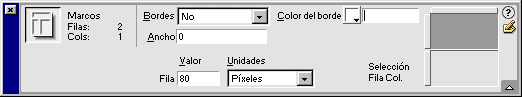 Los dos frameset tienen border=0, eso significa que el borde entre ellos no se va a visualizar con una línea cuando se visite el sitio. Esto se puede modificar con el panel de propiedades del conjunto de marcos:
