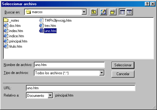 Elegimos uno.htm (que tenemos que tener preparado de antemano, lógicamente) y le damos a Seleccionar.